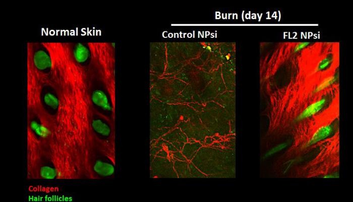 So, in the final stage of the study, the combined team put the FL2-silencing siRNAs inside the protective nanoparticles and applied them to mice with either skin cuts or burns.