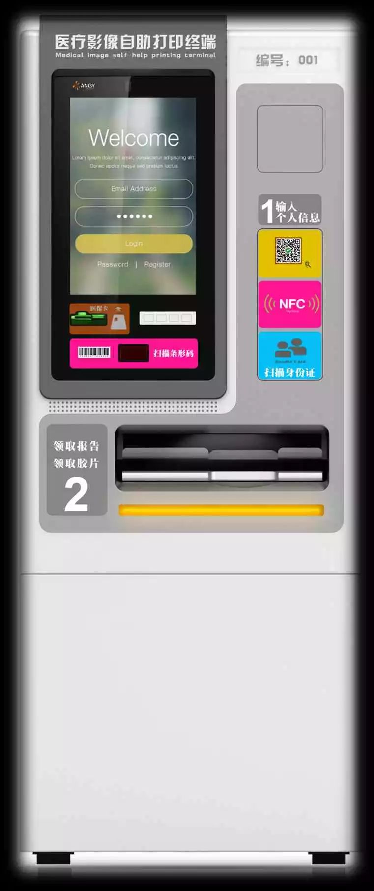 安时利医疗自主研发的安格云影像系列:医用干式胶片配合安格多功能自助取片机可有效分离病患,避免出现交叉感染的风险。