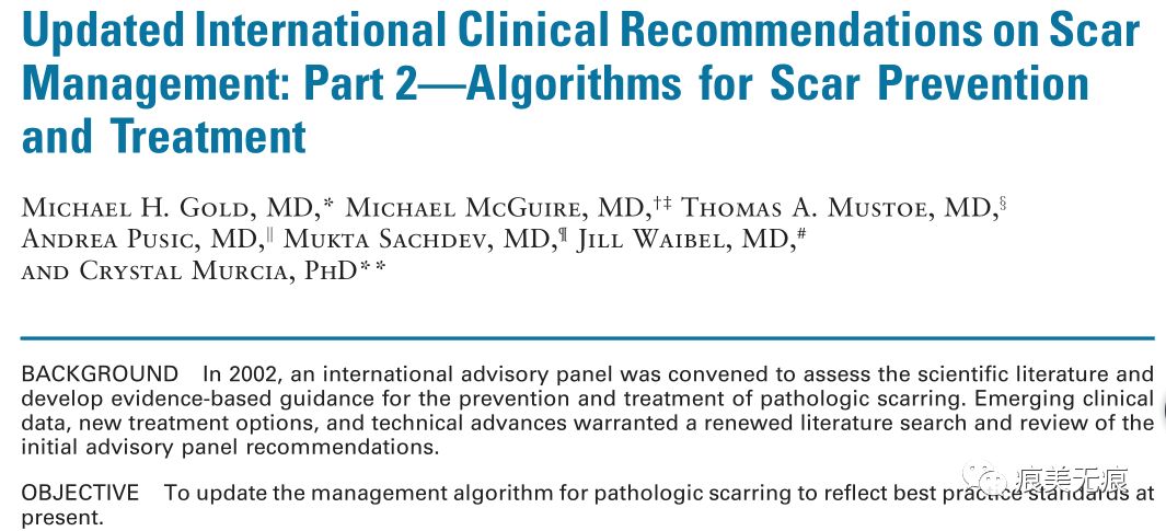 2014年,国际疤痕治疗指南更新,提供给临床一个可以参考的疤痕治疗规范,指南再次推荐:外用硅酮产品为预防和治疗病理性疤痕的首选方案。