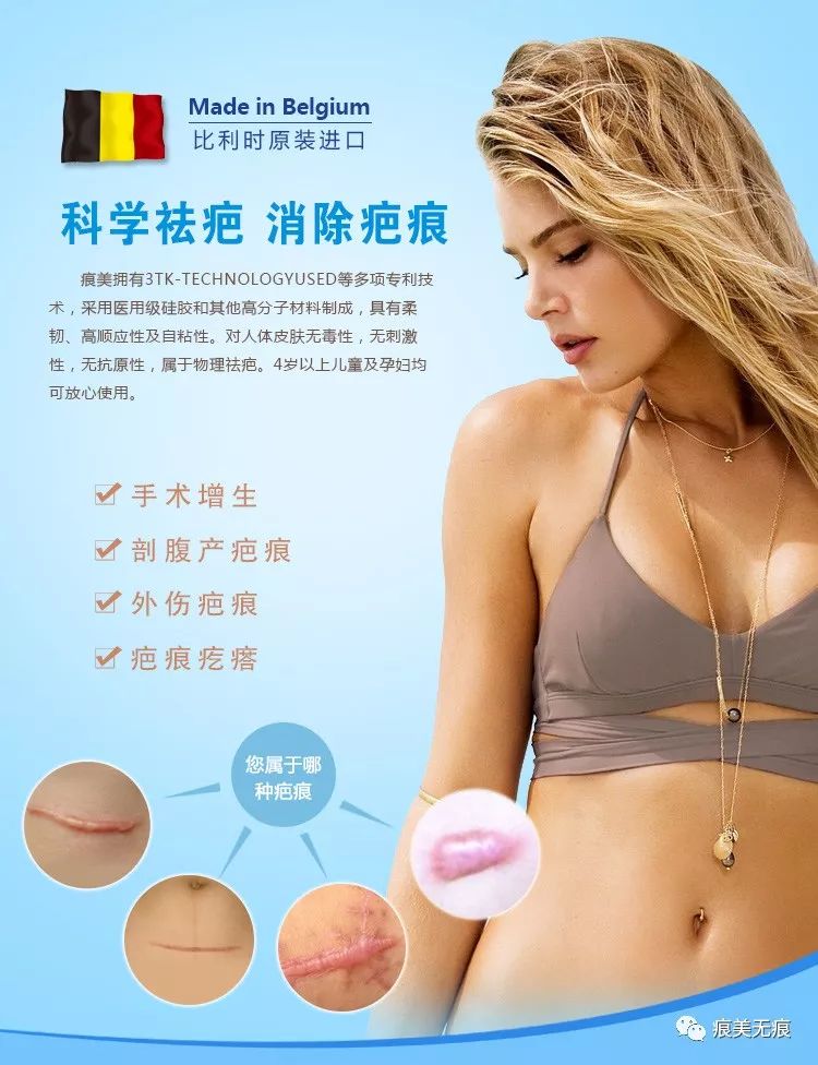 来自比利时的痕美疤痕修复系列,有片剂和凝胶剂两种剂型,采用100%硅酮和先进的生产技术制作而成。