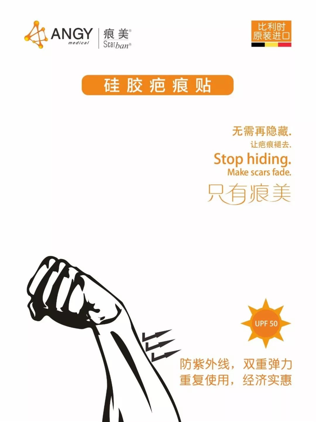 ★硅胶疤痕贴由100%纯硅酮、聚酰胺纺织层构成。具有双向弹性技术、防紫外功能、轻薄透气、可水洗重复使用等诸多优点。