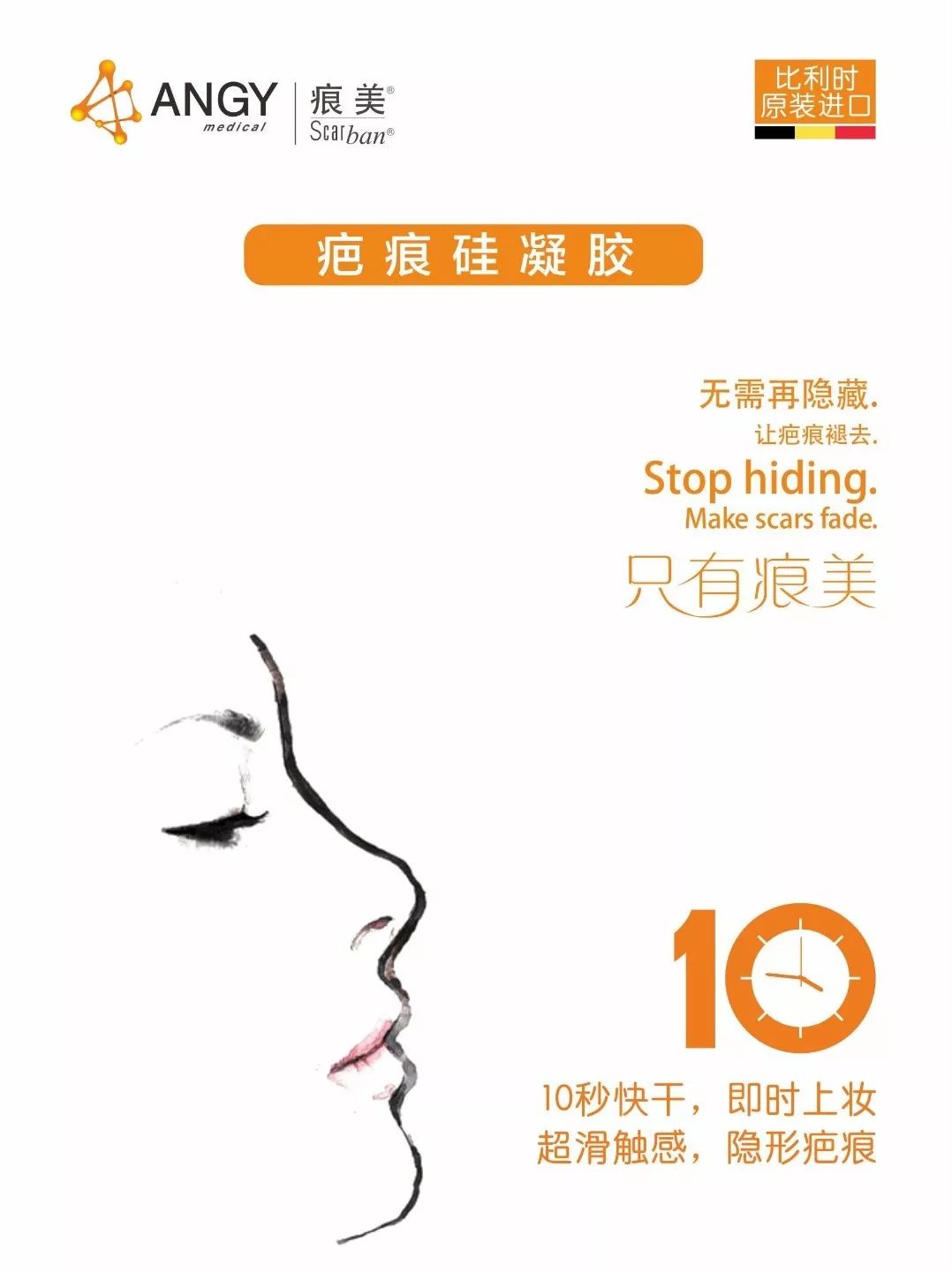 ★疤痕硅凝胶由100%纯硅酮制成,半固态,浓缩透明、10秒快干、干后可即时上妆等诸多优点。